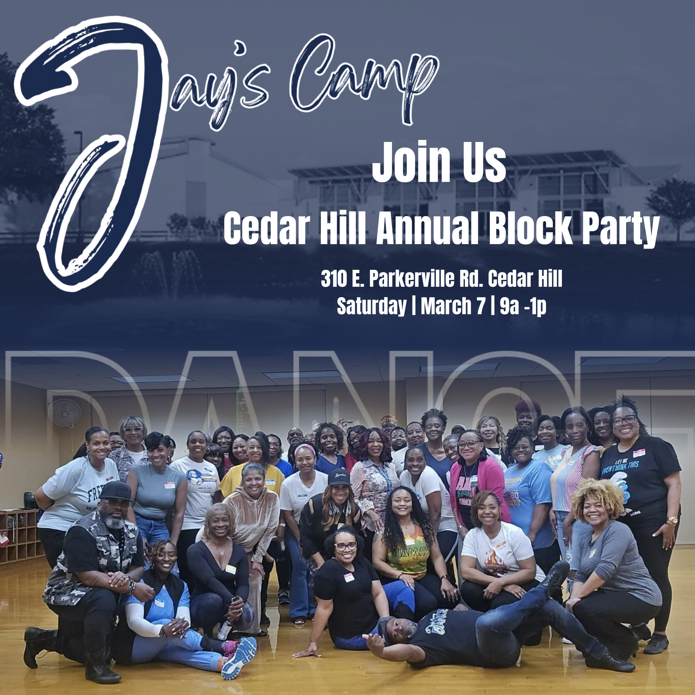On March 7, Jay’s Camp will be at the Cedar Hill Recreation Center Block Party.